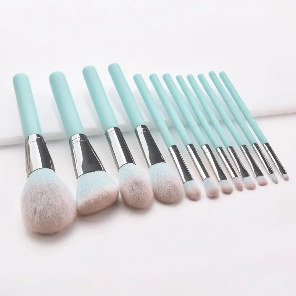 Product Name: 12pcs Light Blue Makeup Brushes Professional Set Concealer Powder Synthetic Hair Blend Cosmetic Eye Shadow Makeup Tools