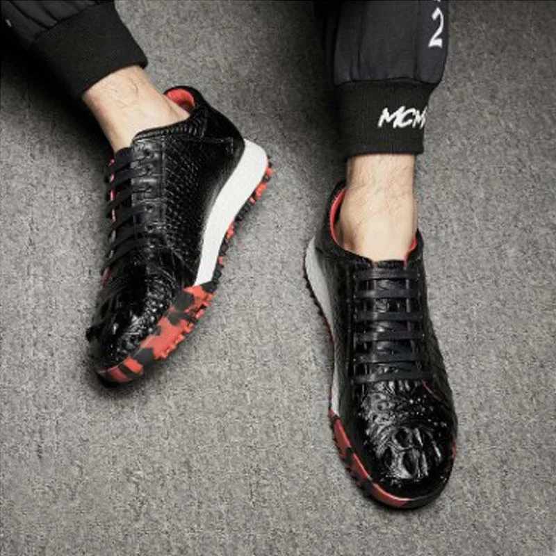 Product Name: ourui Crocodile Skull Leather Male Running Shoes Brush Color Genuine Crocodile Leather Lace-up Sports Shoes Men Shoes